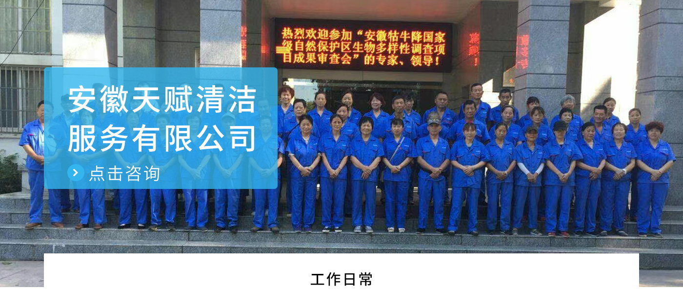 安徽天賦清潔服務有限公司是的服務型企業,主要從事道路清潔、物業托管保潔、工程開荒、高空作業、地毯清洗、石材翻新等多項服務為一體的環保型清潔公司。公司管理機制完善,清潔作業經驗豐富,擁有技術力量,嚴格實行崗前培訓—崗中督查—上崗在培訓的員工管理措施,憑著優良的清潔質量和嚴格的督查管理,為眾多企事業單位、醫院、酒店、廠區商場、物業、道路、學校、公園等提供后勤清潔服務。在業內擁有良好的口碑。工作人員,服務態度優,竭力為客戶提供好的保潔服務。安徽天賦清潔服務有限公司:致力于長期合作關系,提高服務質量,提供高標準的清潔服務。公司的經營理念:為營造一個更清潔、亮麗的生活和工作環境而努力!“誠信”是公司成功保證。“客戶至上,信譽為首”是公司宗旨。高標準提供服務,維護客戶利益、形象,是我始終不渝的目標。